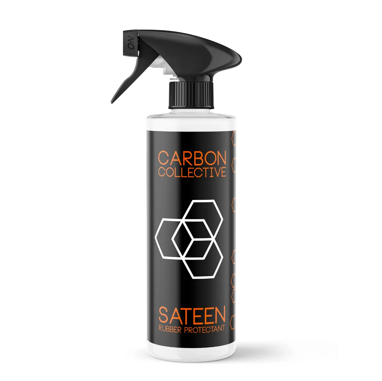 - A Carbon Collective Sateen Rubber & Tyre Protectant 2.0 felvitele után a gumiabroncsok szaténfekete színt kapnak, amely taszítja a vizet és a szennyeződéseket.